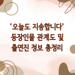 이 글에서는 "오늘도 지송합니다"의 주요 등장인물들과 그들의 관계, 그리고 출연진 정보를 자세히 살펴보겠습니다. 이를 통해 드라마의 전체적인 흐름과 등장인물들의 역할을 이해하고, 앞으로 펼쳐질 그들의 파란만장한 이야기에 대한 기대감을 높일 수 있을 것입니다.