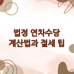 직장인 연말이 다가오면 연차수당에 대한 관심이 높아지죠? 하지만 막상 계산하려면 어려움을 겪는 분들이 많습니다. 연차수당 계산법을 제대로 모르면 회사에서 제대로 지급받지 못할 수도 있습니다. 오늘은 법정 연차수당 계산법과 지급 기준, 그리고 절세 팁까지 자세히 알아보겠습니다.