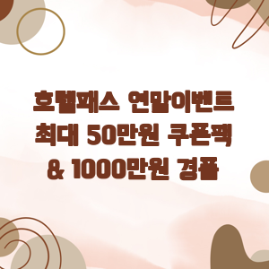 호텔패스는 연말을 맞아 다양한 이벤트와 혜택을 준비하여 여행객들의 여행 경험을 더욱 풍성하게 만들어 주고 있습니다. 최대 50만원 할인 쿠폰팩과 1000만원 상당의 경품 이벤트 등 알찬 혜택들이 준비되어 있어, 여행을 계획 중인 분들에게 큰 도움이 될 것 같습니다.