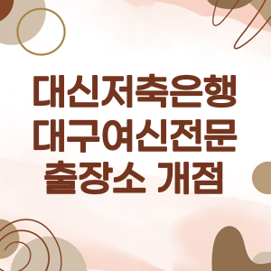 이번에 살펴본 바와 같이, 대신저축은행의 대구 출장소 개점은 지역 경제 활성화와 고객 편의성 제고에 기여할 것으로 보입니다. 특히 지역 밀착형 영업 전략을 통해 서민과 중소상공인 고객들의 금융 수요에 신속하게 대응할 수 있게 되었다는 점이 주목할 만합니다.