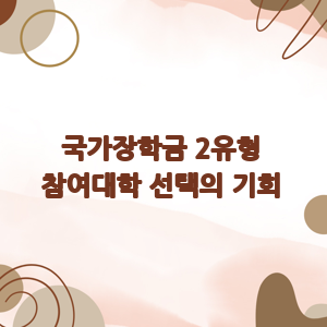 국가장학금 2유형은 정부와 대학이 협력하여 저소득층, 장애인, 자립준비청년 등 소외계층 학생들을 지원하는 제도입니다. 이 제도를 잘 활용한다면 여러분의 학업 지속과 미래 설계에 큰 도움이 될 것입니다.